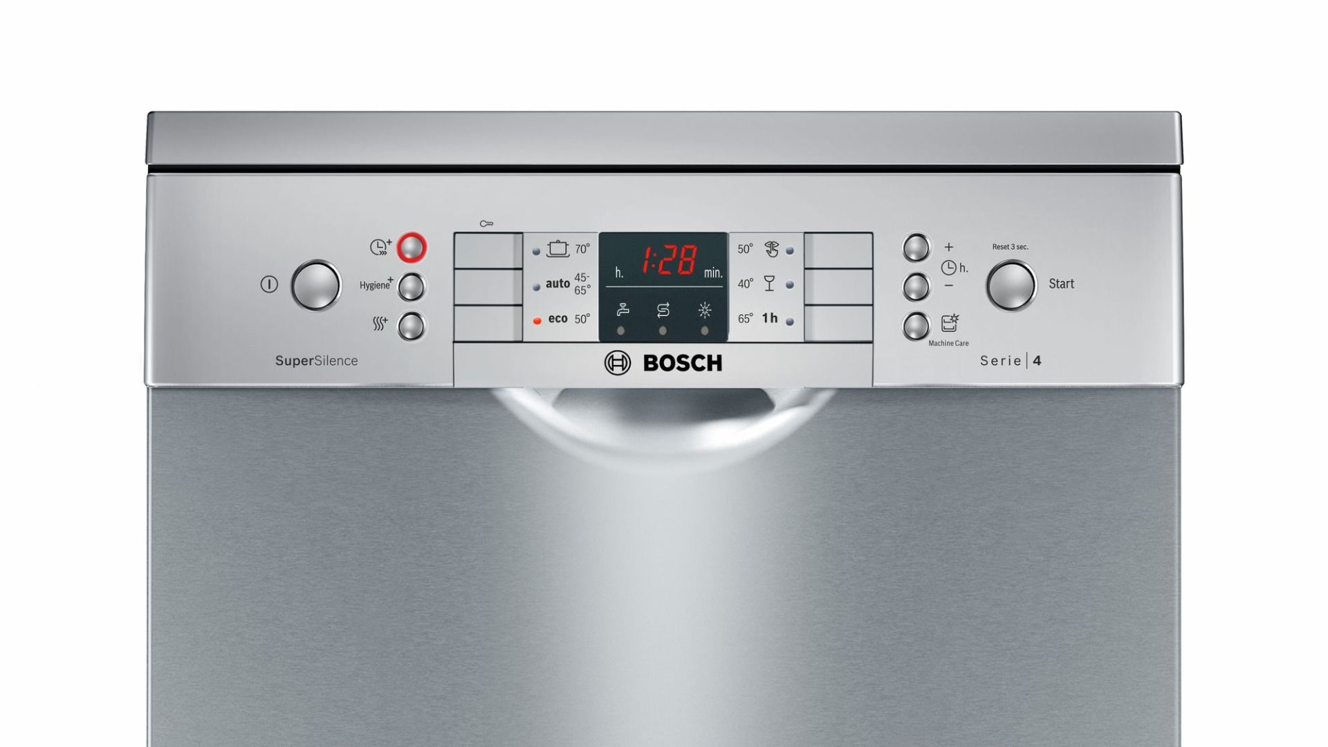 Chương trình Eco 50oC của Máy rửa bát độc lập BOSCH SPS46MI01E|Serie 4 là chương trình rửa tiết kiệm được thiết lập ở tất cả các máy rửa bát Bosch và được cài làm chương trình mặc định của nhà sản xuất khi khởi động máy. Đây là chương trình rửa sinh thái (tiết kiệm) để làm sạch bát đĩa và vật dụng trong ngày.