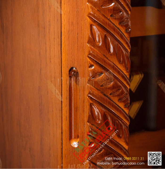 - Chất liệu: Tủ gỗ sồi, cửa kính, khay gỗ tuyết tùng cao cấp